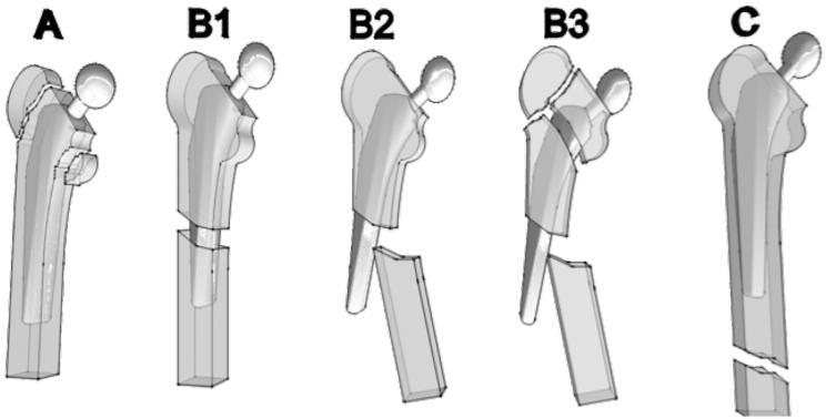 Tipo A: de trocanter mayor (AG) o menor (AL) que no alteran la estabilidad de la protesis