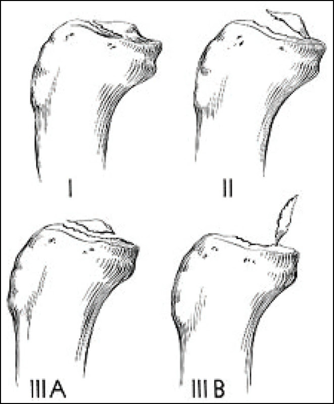 Clasif. Meyers y Mckeever: para fracturas de la espina tibial: