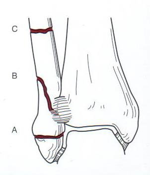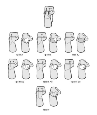 - C: suprasindesmales, dificiles de reducir y fijar