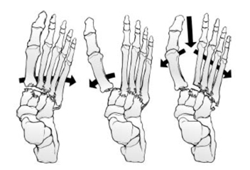 Clasif. Quenu y Kuss: para lesiones de articulacion tarsometatarsianas (Lisfranc), describe la direccion de la inestabilidad: